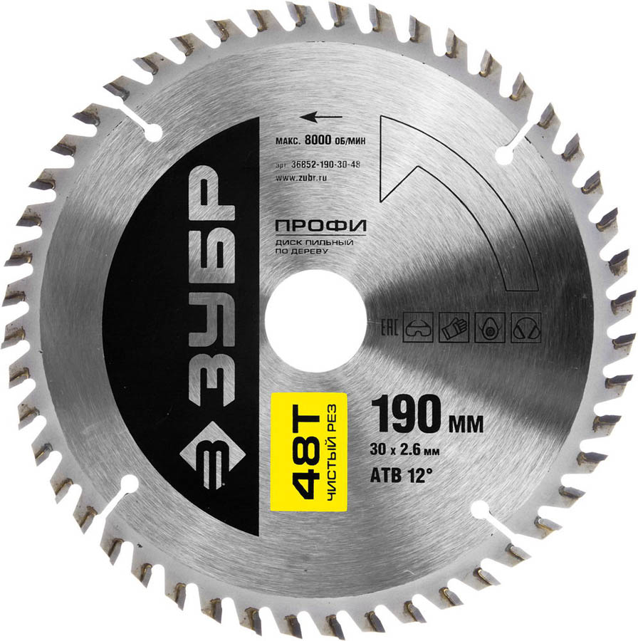 ЗУБР Ø 190 x 30 мм, 48T, диск пильный по дереву 36852-190-30-48 Профессионал