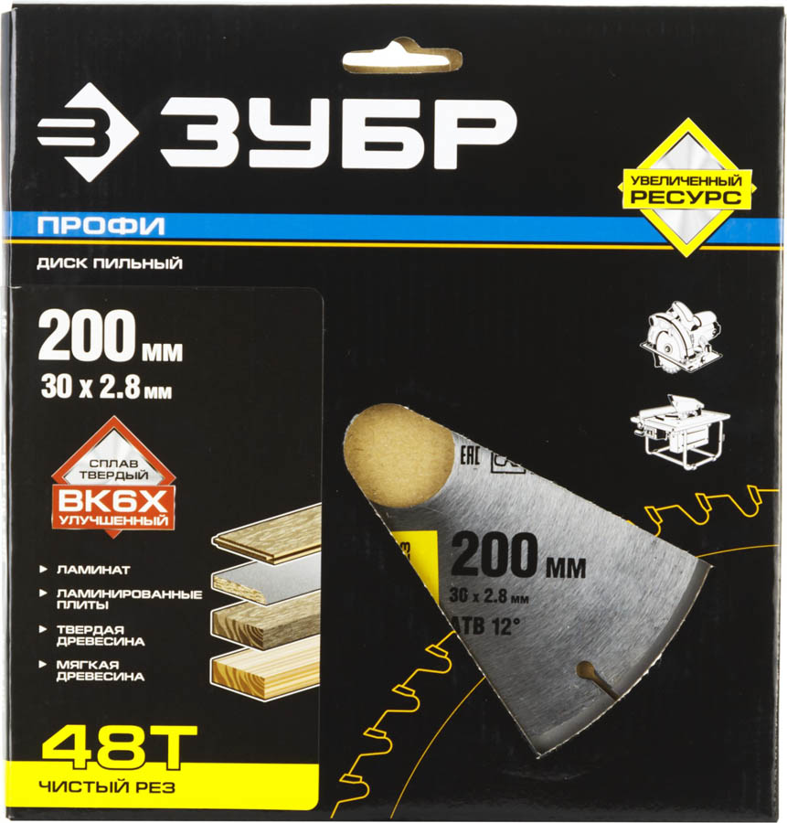 ЗУБР Чистый рез 200 х 30 мм 48Т, диск пильный по дереву