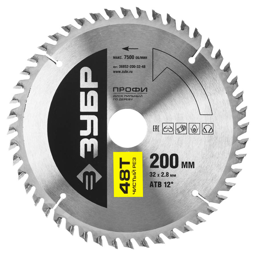 ЗУБР Чистый рез 200 х 32 мм 48Т, диск пильный по дереву
