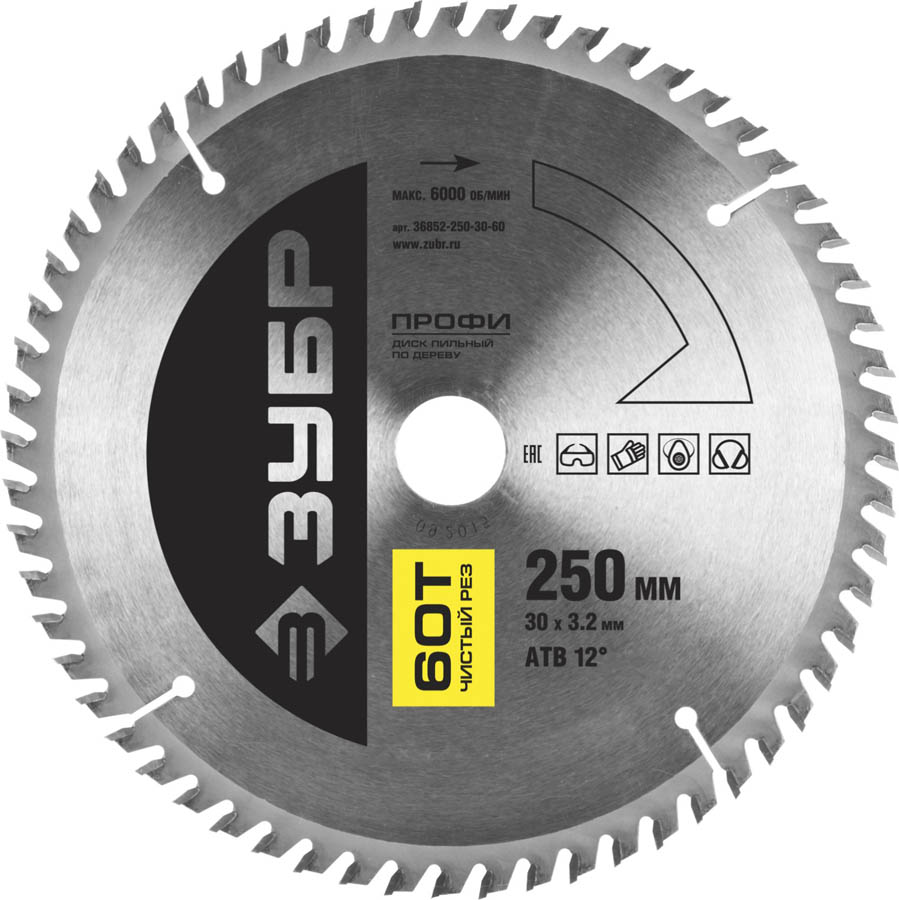 ЗУБР Чистый рез 250 х 30 мм 60Т, диск пильный по дереву