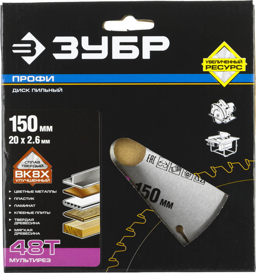 ЗУБР Мультирез 150 х 20 мм 48Т, диск пильный по алюминию