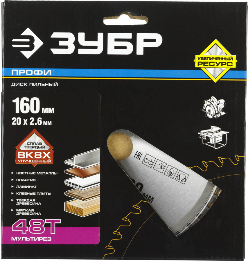 Пильный диск по дереву универсальный ЗУБР 36853-160-20-48, применяется при пилении алюминия, пластика, а также различных древесных материалов. Автоматическая заточка и шлифовка зубьев значительно повышают точность и чистоту реза. Особые компенсационные прорези позволяют исключить возникновение внутренних напряжений и деформацию диски от перегрева при работе.