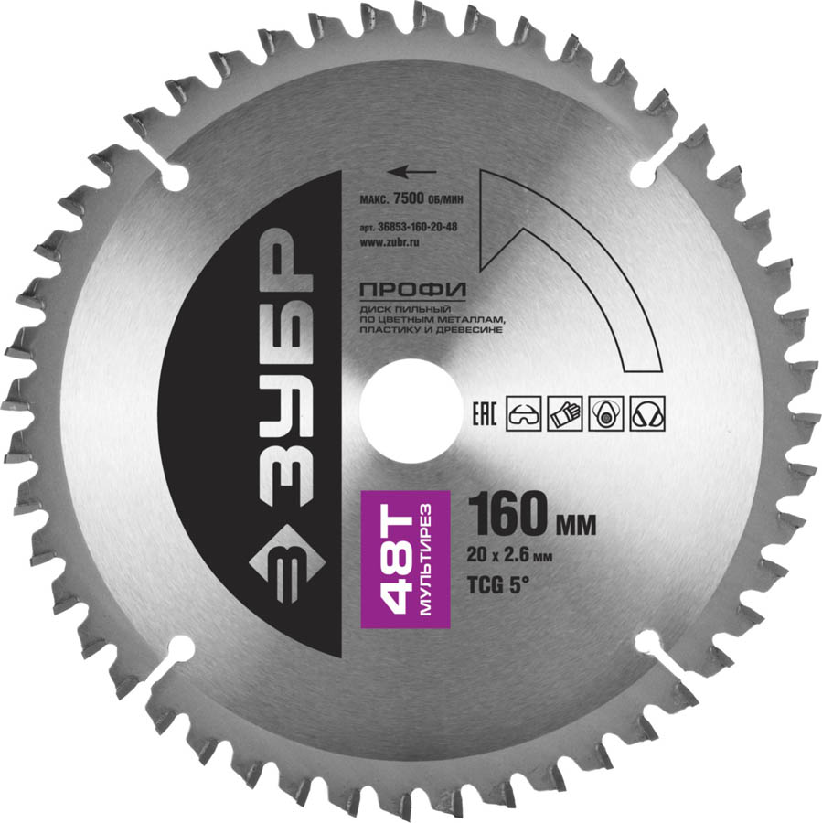 ЗУБР Ø 160 х 20 мм, 48T, диск пильный по алюминию, пластику 36853-160-20-48 Профессионал