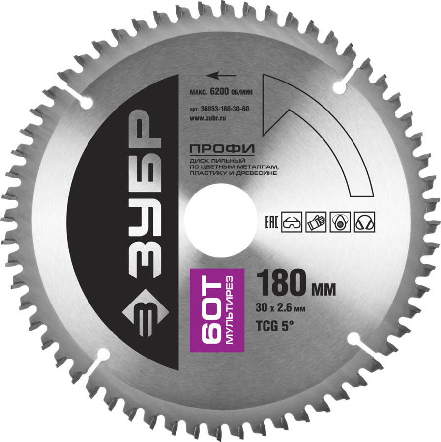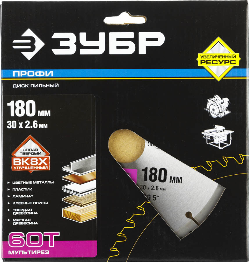 ЗУБР Мультирез 180 х 30 мм 60Т, диск пильный по алюминию