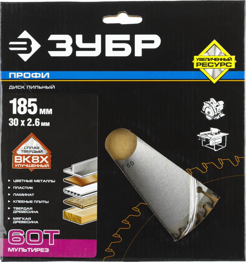 ЗУБР Мультирез 185 х 30 мм 60Т, диск пильный по алюминию