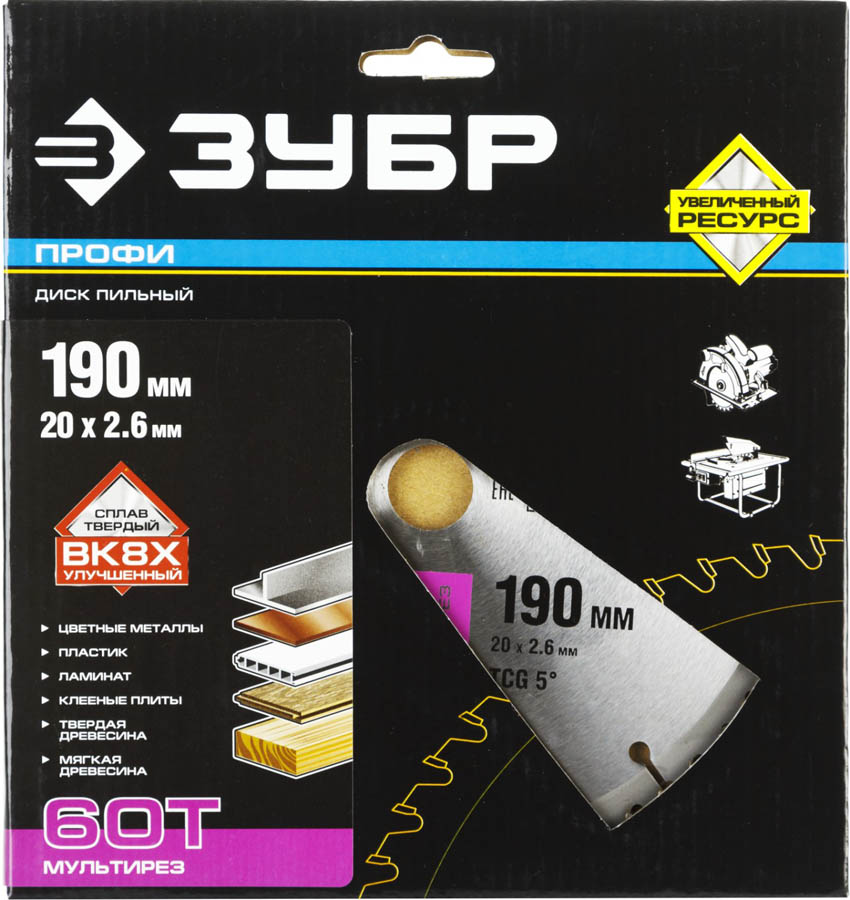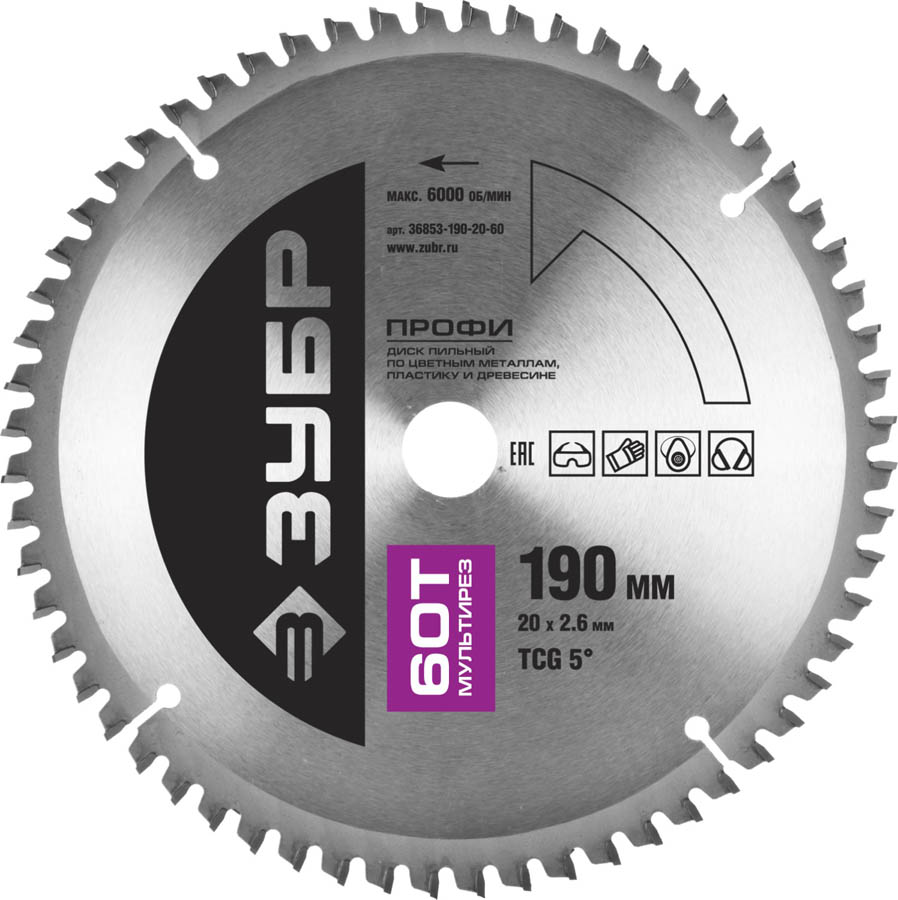 ЗУБР Мультирез 190 х 20 мм 60Т, диск пильный по алюминию