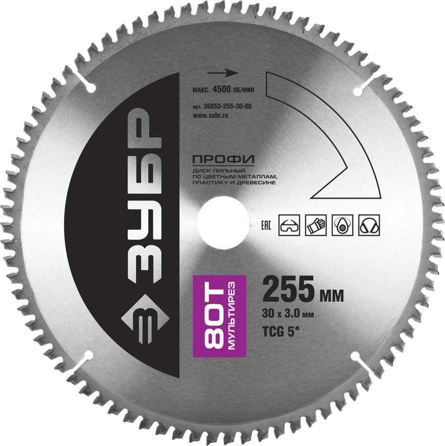 ЗУБР Мультирез 255 х 30 мм 80Т, диск пильный по алюминию