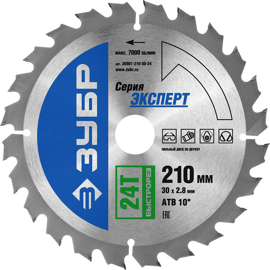 ЗУБР Быстрорез 210 x 30 мм 24Т, диск пильный по дереву