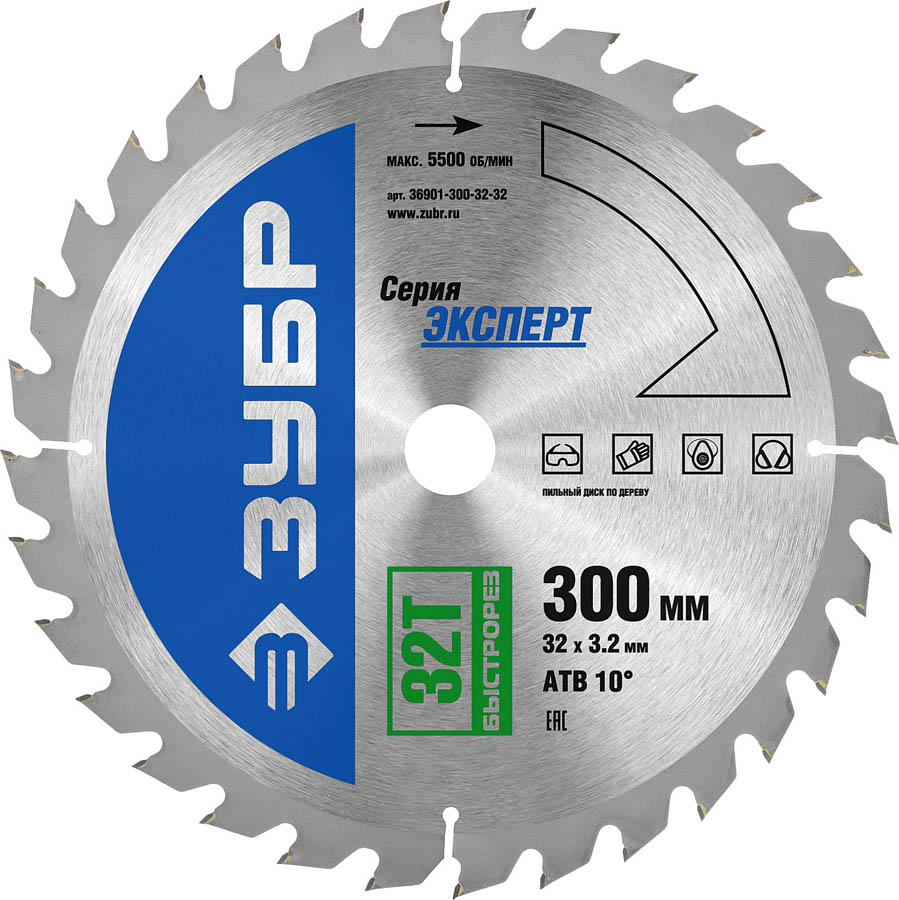 ЗУБР Быстрорез 300 x 32 мм 32Т, диск пильный по дереву