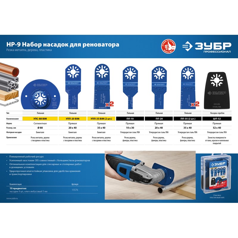 ЗУБР НР-9, OIS-хвост. Набор насадок для реноватора, 9 предм. Профессионал (15576)
