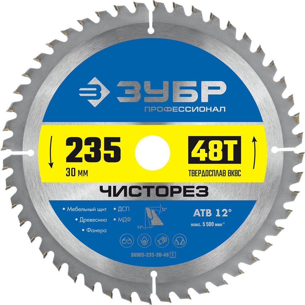 Пильный диск по дереву, Профессионал Чисторез, 235 x 30 мм, 48Т, ЗУБР (36905-235-30-48)