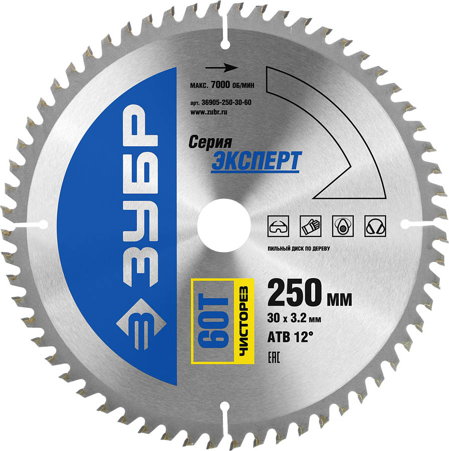 ЗУБР Чисторез 250 x 30 мм 60Т, диск пильный по дереву