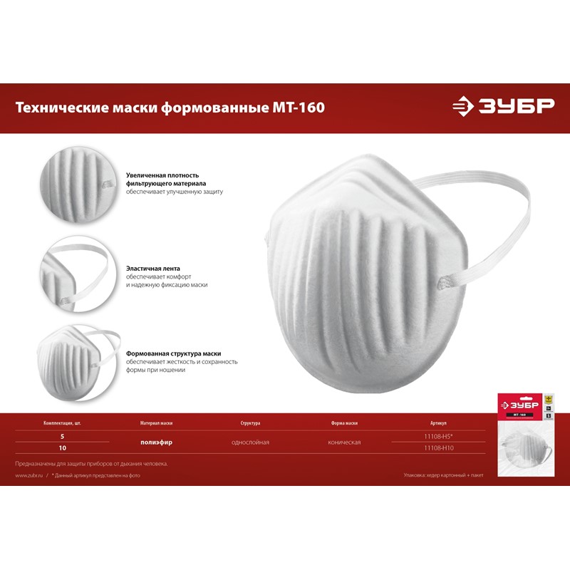 ЗУБР МТ-160 техническая маска однослойная, 10шт в упаковке