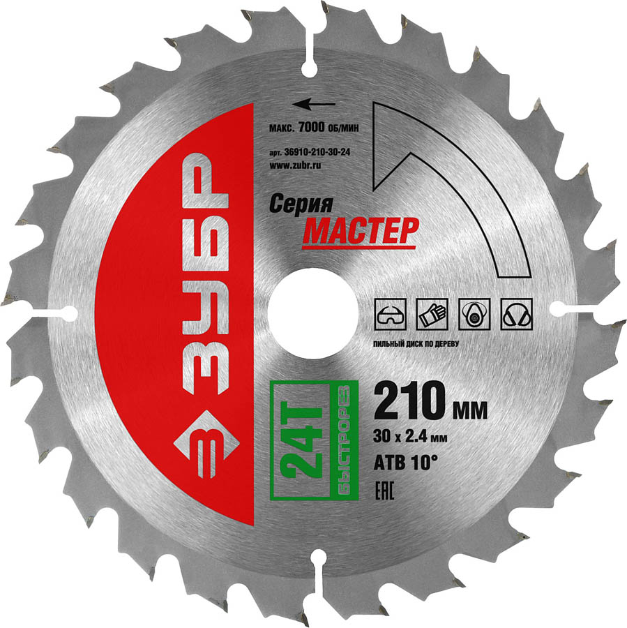 Пильный диск по дереву ЗУБР 36910-210-30-24, предназначен для быстрого продольного и поперечного распила любых типов древесины. Подходит как для грубых черновых, так и для быстрых точных угловых распилов на циркулярных, торцовочных и станковых пилах. Повышенный контроль качества на всех стадиях производства обеспечивают высокую точность выпускаемых изделий и гарантируют продолжительный рабочий ресурс каждого пильного диска.