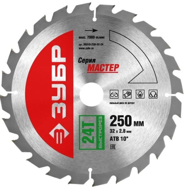 Диск пильный по дереву ЗУБР 36910-250-32-24 быстрый рез широко применяется для долгосрочного и эффективного пропила мягких и твердых пород древесины, фанеры, обшивочных досок, строительного бруса, неламинированной ДСП и т.п. Ширина распила - 2,8 мм.