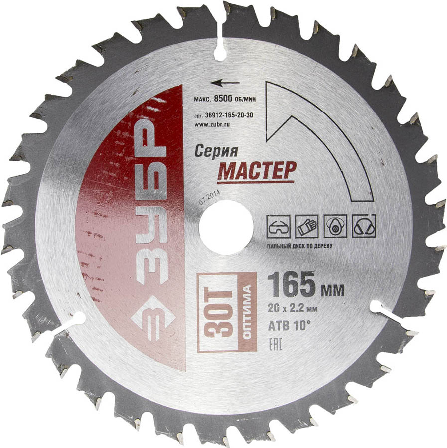 ЗУБР Оптимальный рез 165 x 20 мм 30T, диск пильный по дереву