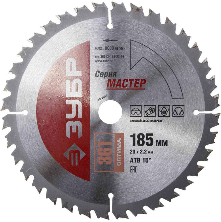 Пильный диск по дереву ЗУБР 36912-185-20-36, предназначен для быстрого распила всех типов древесины. Подходит для продольного, поперечного и углового распила твердых и мягких пород дерева, клеевых плит, МДФ (в том числе облицованных натуральным шпоном, меланиновой пленкой, бумагой, пластиком и др.), фанеры и облицованной фанеры на циркулярных, торцовочных и станковых пилах. Повышенный контроль качества на всех стадиях производства обеспечивают высокую точность выпускаемых изделий и гарантируют продолжительный рабочий ресурс каждого пильного диска.