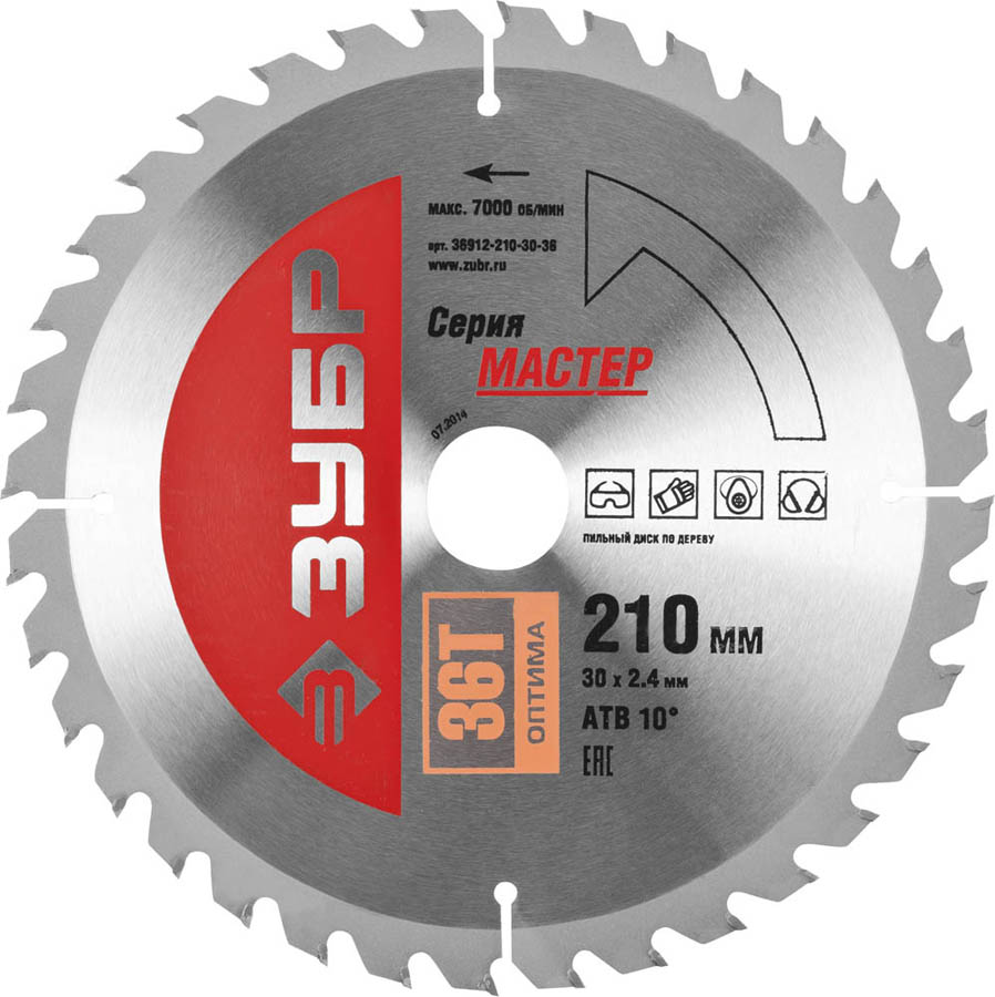 Пильный диск по дереву ЗУБР 36912-210-30-36, предназначен для быстрого распила всех типов древесины. Подходит для продольного, поперечного и углового распила твердых и мягких пород дерева, клеевых плит, МДФ (в том числе облицованных натуральным шпоном, меланиновой пленкой, бумагой, пластиком и др.), фанеры и облицованной фанеры на циркулярных, торцовочных и станковых пилах. Повышенный контроль качества на всех стадиях производства обеспечивают высокую точность выпускаемых изделий и гарантируют продолжительный рабочий ресурс каждого пильного диска.
