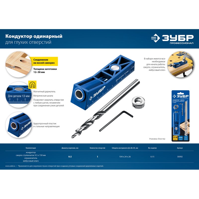 ЗУБР Кондуктор МИНИ одинарный для глухих отверстий, одно отверстие