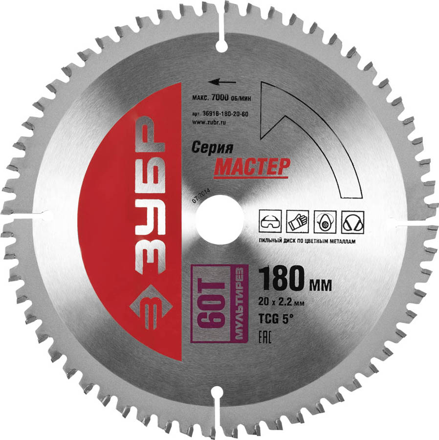 ЗУБР Мультирез 180 x 20 мм 60Т, диск пильный по алюминию (36916-180-20-60, )