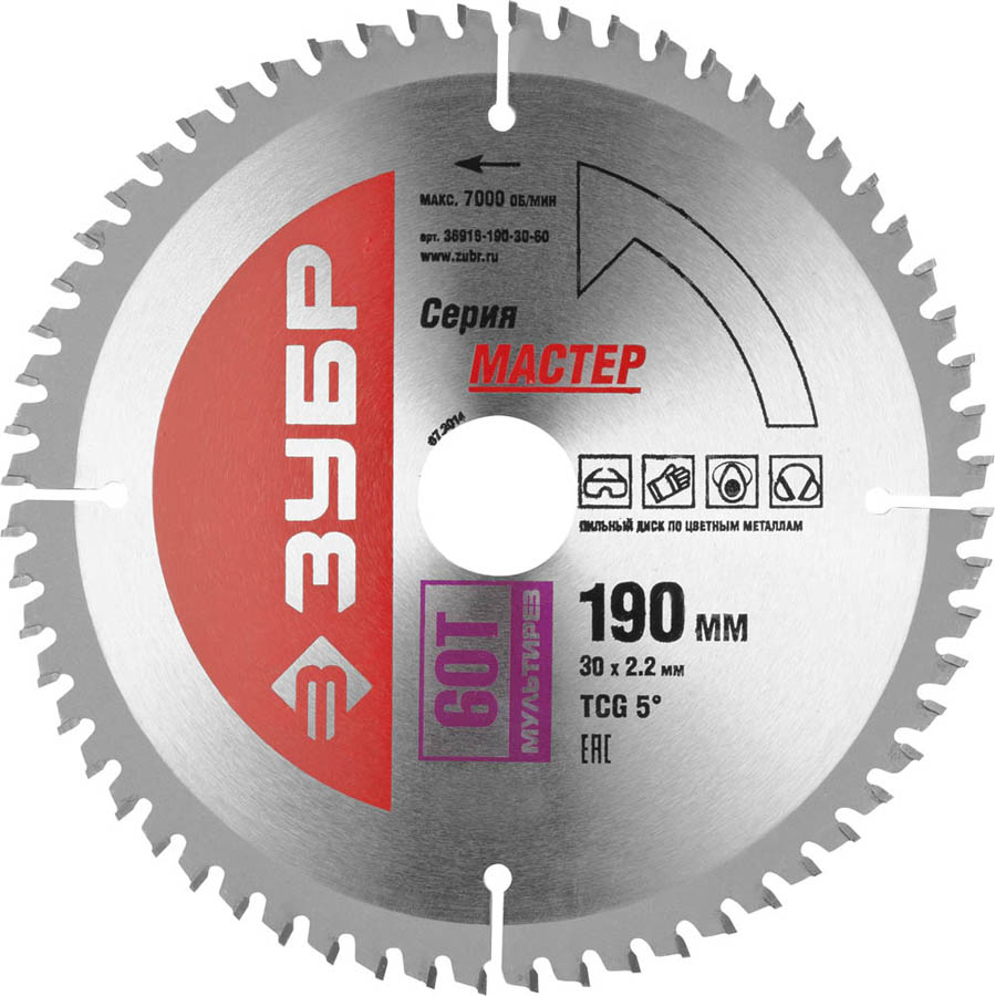 ЗУБР Мультирез 190 x 30 мм 60Т, диск пильный по алюминию (36916-190-30-60, )