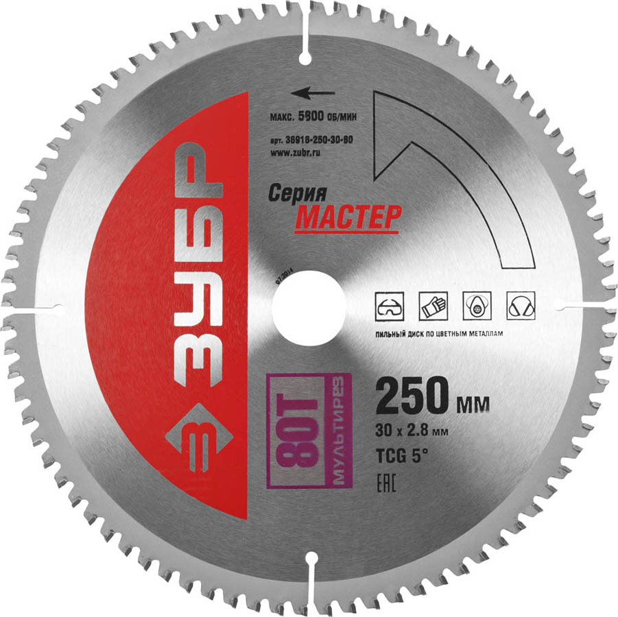 ЗУБР Мультирез 250 x 30 мм 80Т, диск пильный по алюминию (36916-250-30-80, )