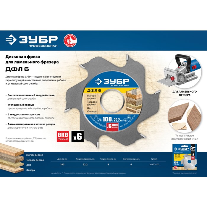 дисковая фреза для ламельного фрезера 36970-100 Зубр