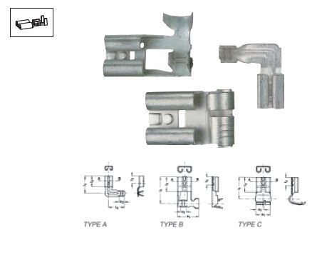 Неизолированные плоские разъемы (розетка) с боковым отводом проводника.