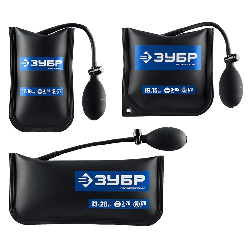 Пневмоподушка набор 3шт: 12х19, 16х15, 13х28 см, 170кг, в чехле, универсальный пневмоклин/ монтажная подушка/ пневмодомкрат ЗУБР (37556-H3)