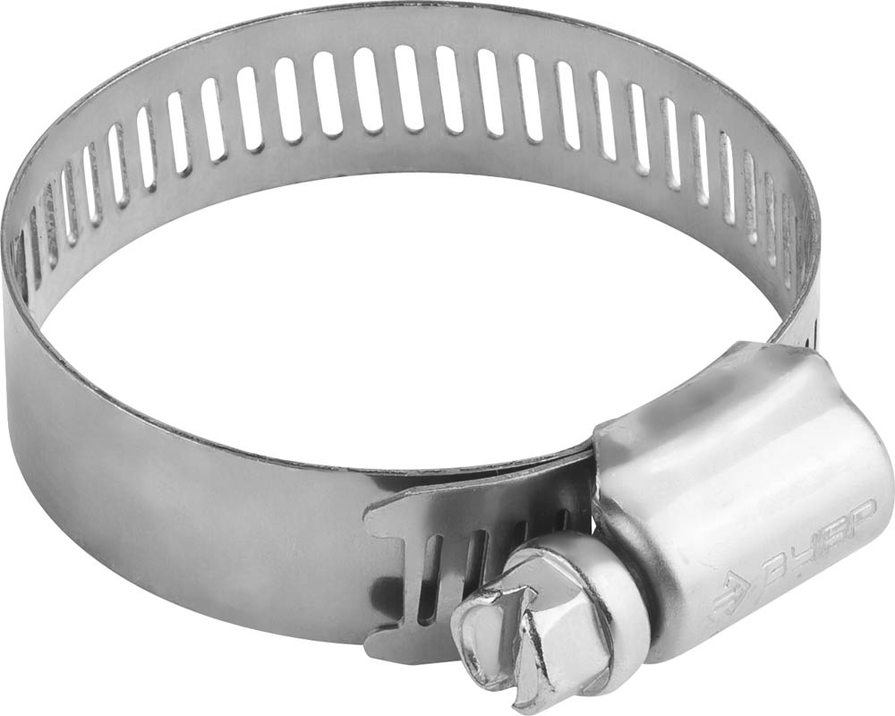 Хомут металлический ЗУБР 37815-032-51-4, предназначен для крепления шлангов к патрубкам, а также широко применяются в автомобилестроении, машиностроении, при выполнении авторемонтных, садовых, сантехнических и прочих работ. Хомут червячный состоит из просечной ленты и замка с винтом. Для монтажа хомута необходима только отвертка. Изготовленный из нержавеющей стали хомут обладает повышенной прочностью и коррозионостойкостью. Червячный хомут состоит из штампованной нержавеющей ленты и винта с червячной резьбой. По всей длине ленты имеются просечки, расположенные на одинаковом расстоянии друг от друга. При вращении винта лента сжимается, благодаря чему создается надежное и герметичное соединение шлангов, различных труб, и т.д. Червячный винт снабжен шестигранной головкой и шлицем SL, что позволяет использовать при монтаже гаечный ключ или шлицевую отвертку. Хомут предназначен для многократного использования.