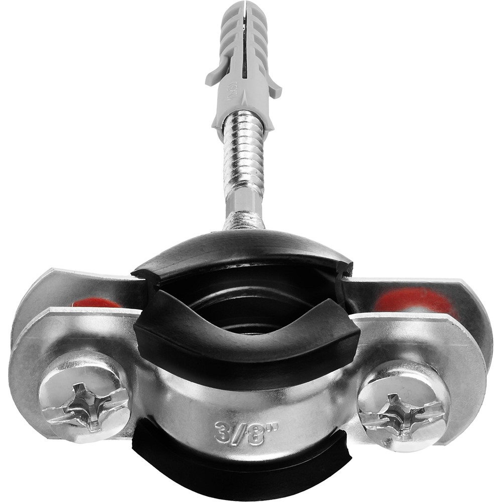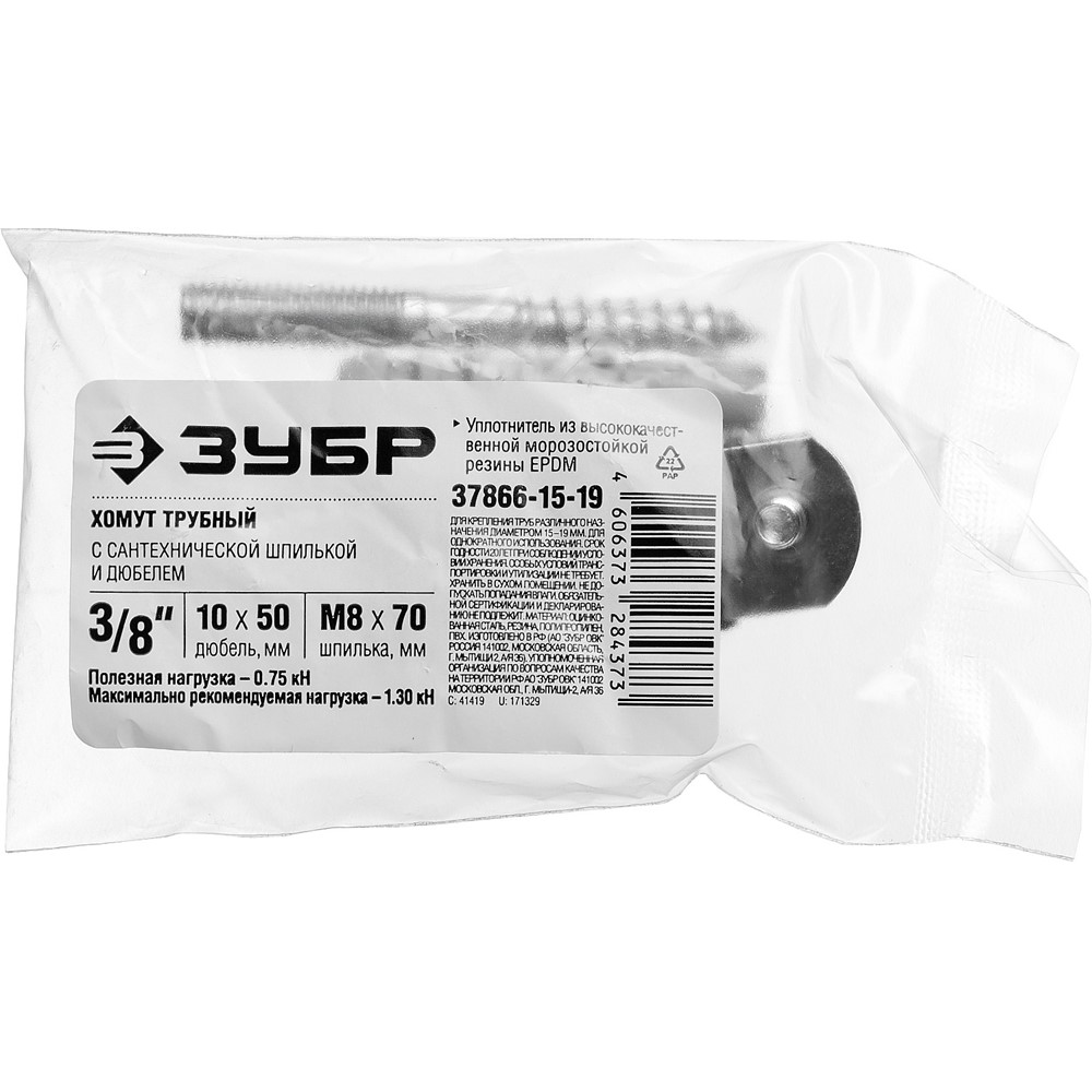 Хомут трубный с гайкой, оцинкованный, в комплекте с сантехнической шпилькой и дюбелем, 3/8", 1шт, ЗУБР
