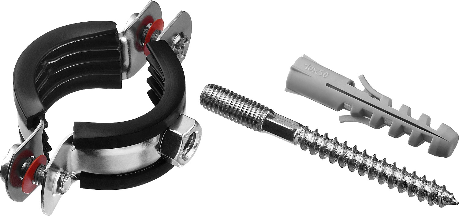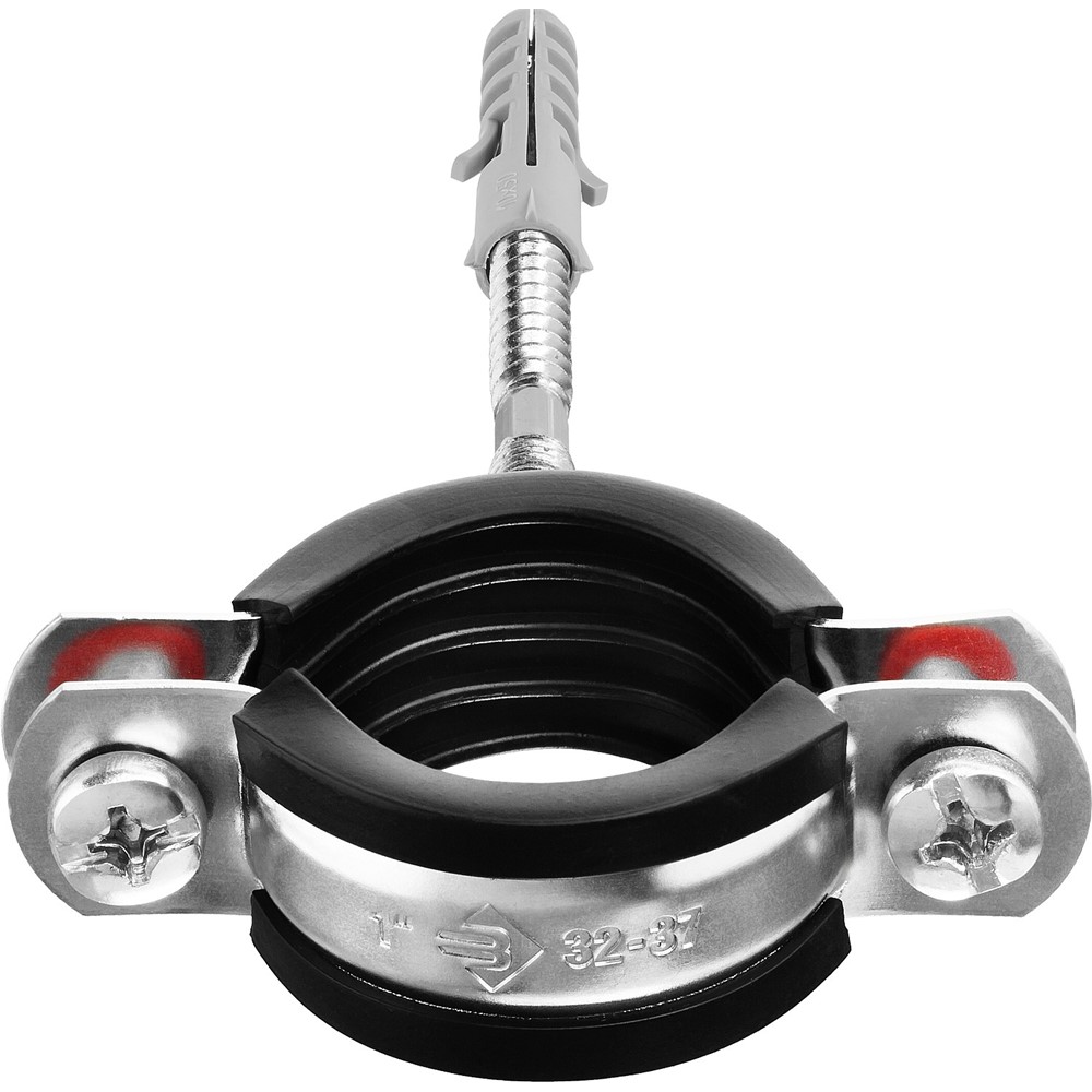 Хомут трубный с гайкой, оцинкованный, в комплекте с сантехнической шпилькой и дюбелем, 1", 1шт, ЗУБР