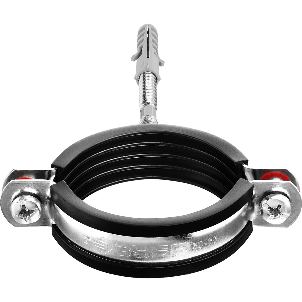 Хомут для труб металлический ЗУБР 37866-59-65, применяется для крепления труб различного назначения. Хомуты усилены двумя ребрами жесткости и снабжены уплотнителем из высококачественной резины, что обеспечивает идеальную шумоизоляцию.