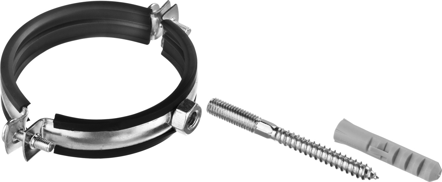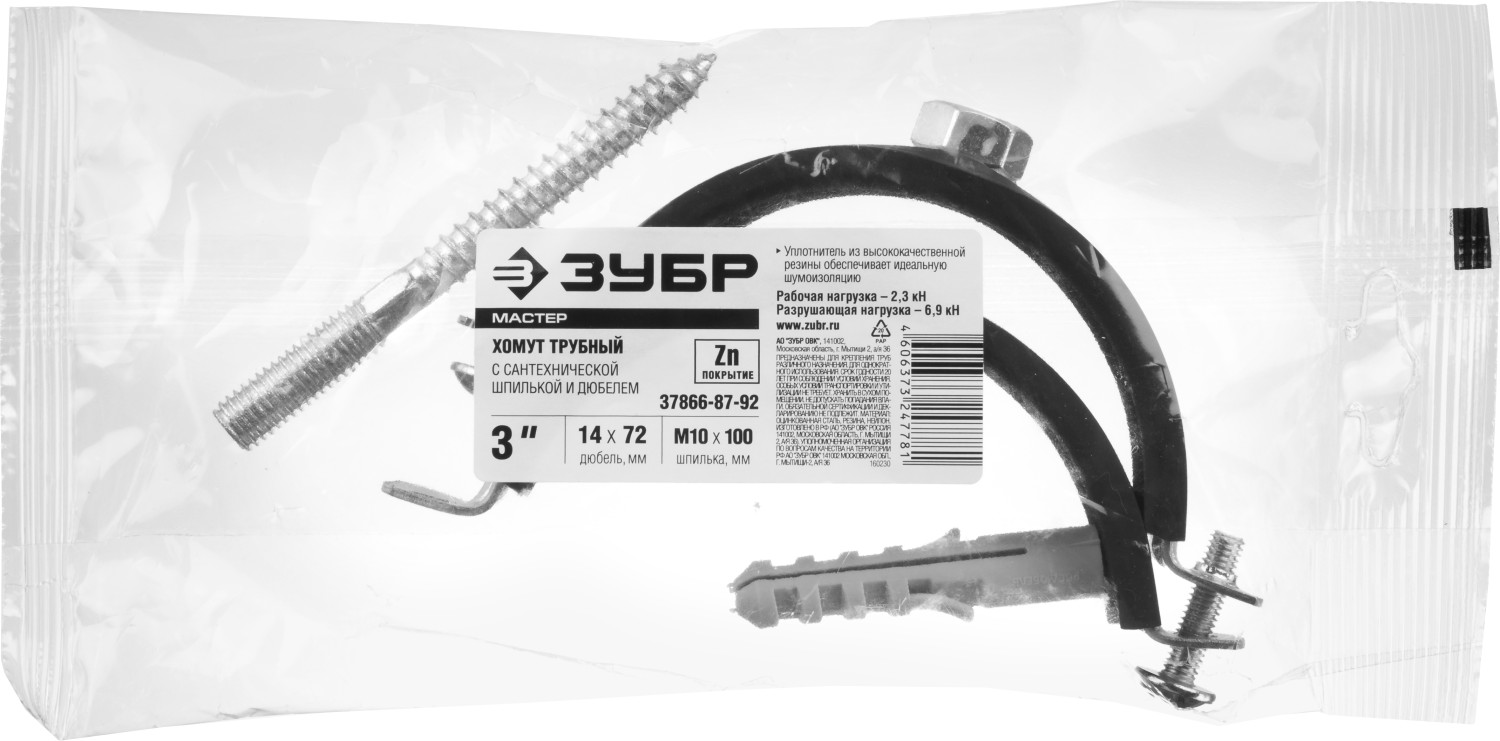 Хомут трубный с гайкой ЗУБР 37866-87-92, предназначен для крепления труб различного назначения. Трубные хомуты способны выдерживать большие нагрузки и обеспечивают надежность крепления труб различного назначения к любым основаниям. Труба прочно фиксируется внутри хомута с помощью метрических винтов. Уплотнитель из высококачественной резины обеспечивает идеальную шумоизоляцию. Комплектность набора позволяет крепить хомут как с помощью гайки, так и с использованием шпильки и дюбеля Ребро жесткости придаёт изделию дополнительную прочность Уплотнитель из высококачественной морозостойкой резины поглощает вибрацию (шум) Цинковое покрытие надежно защищает от коррозии. Для крепления труб различного назначения.