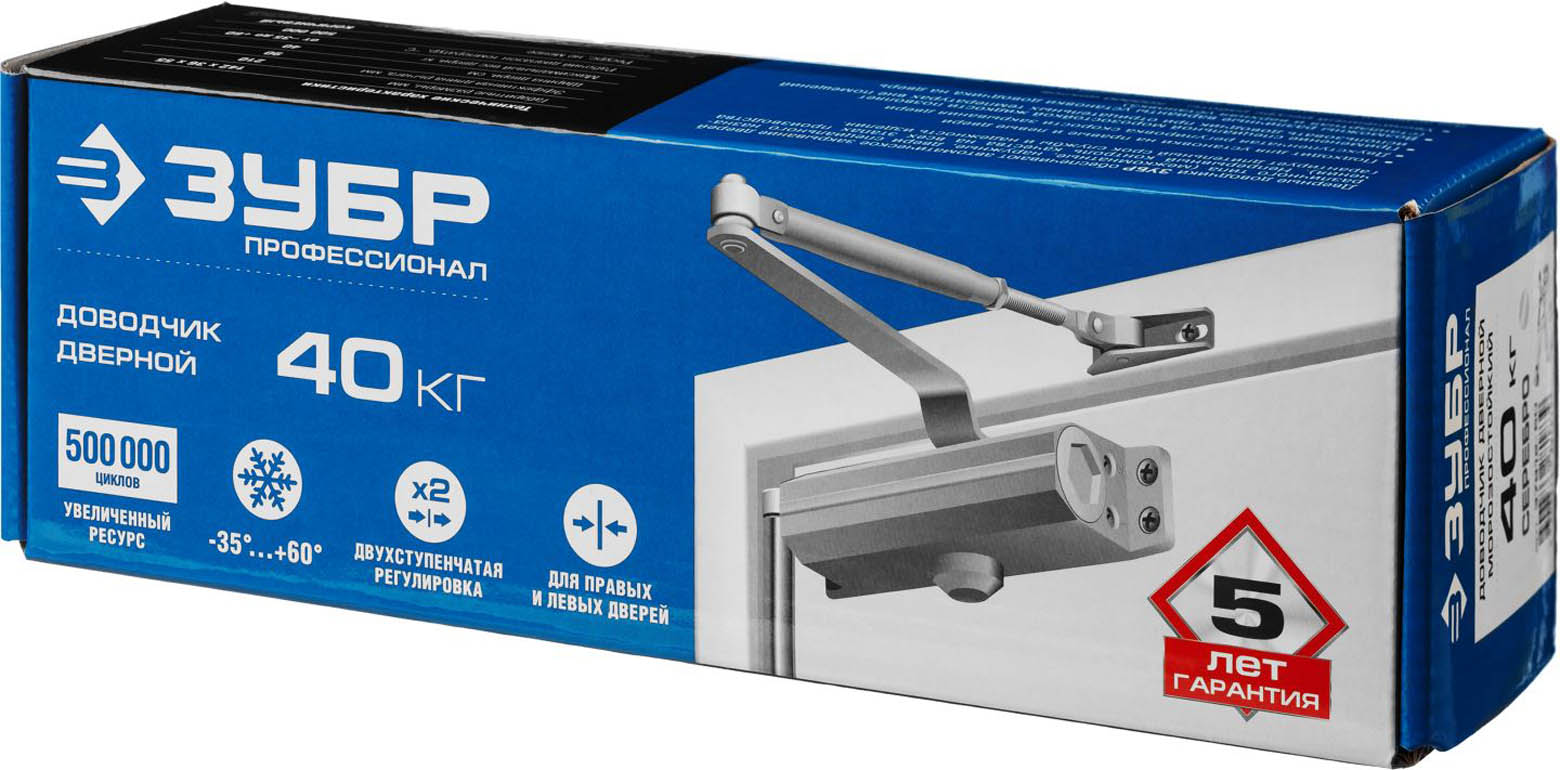 Доводчик дверной ЗУБР для дверей массой до 40 кг, цвет серебро