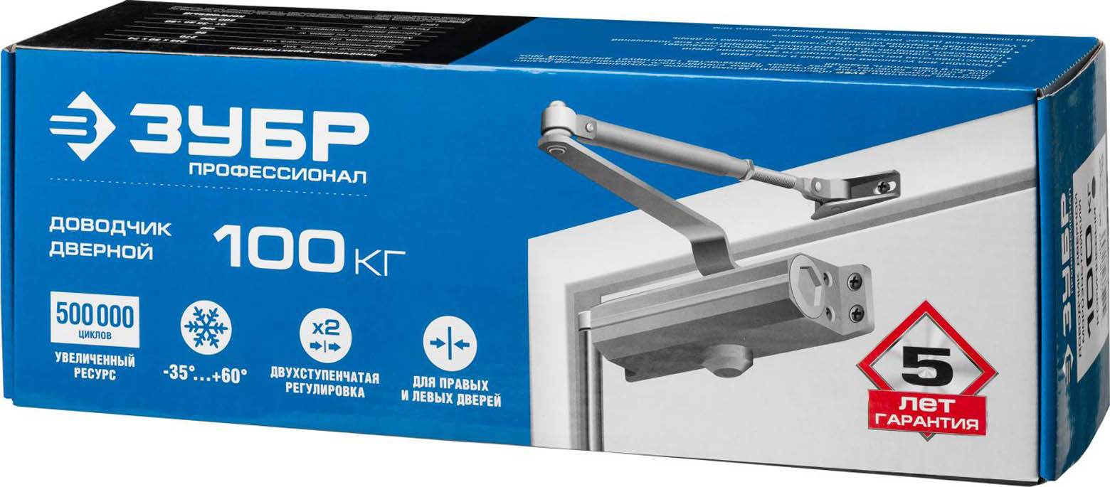 Доводчик дверной ЗУБР "ПРОФЕССИОНАЛ", для дверей массой до 100 кг, цвет коричневый