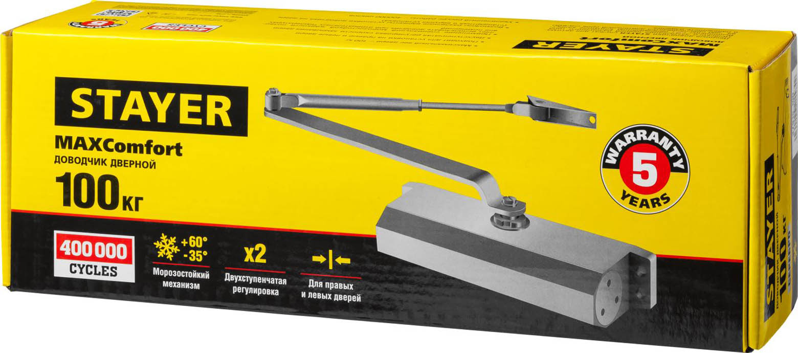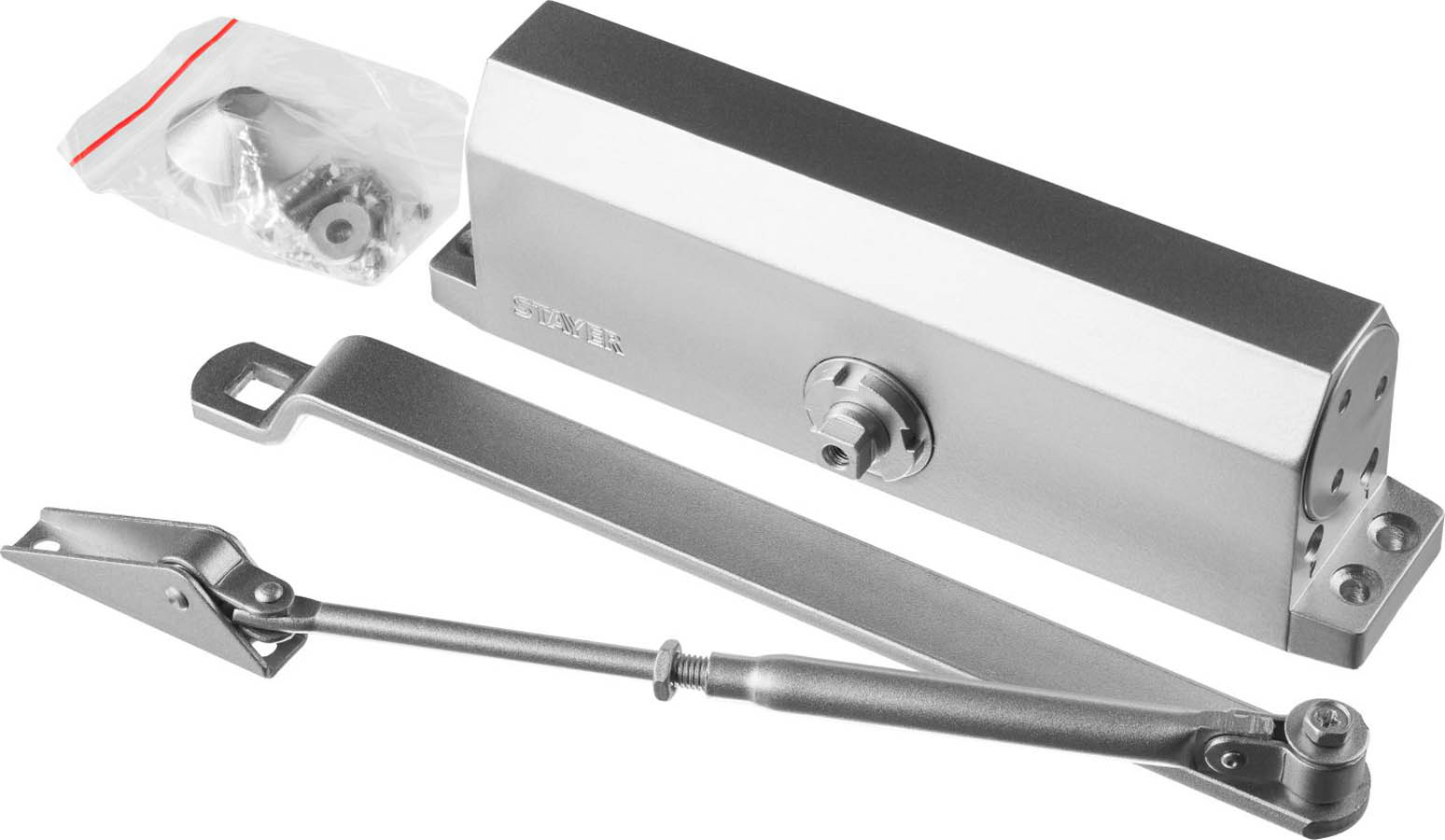 Доводчик дверной STAYER, для дверей массой до 100 кг, цвет серебро