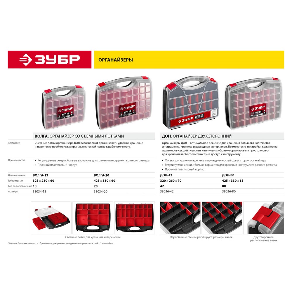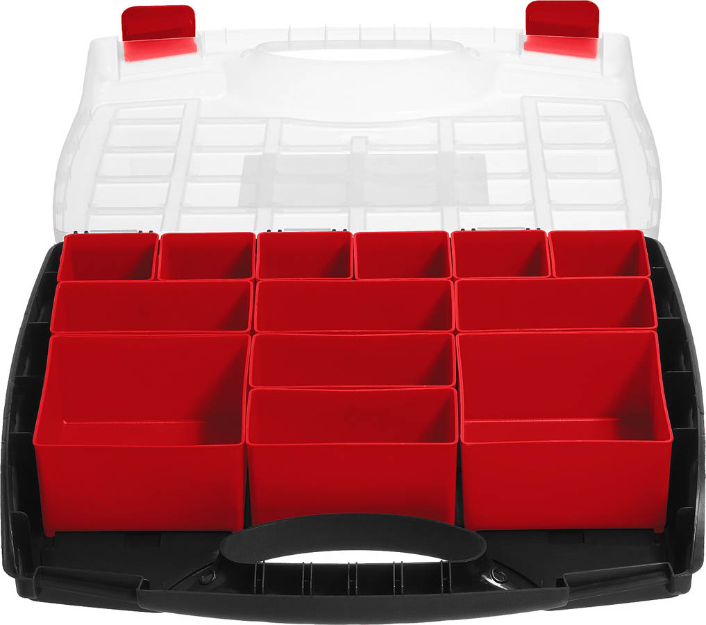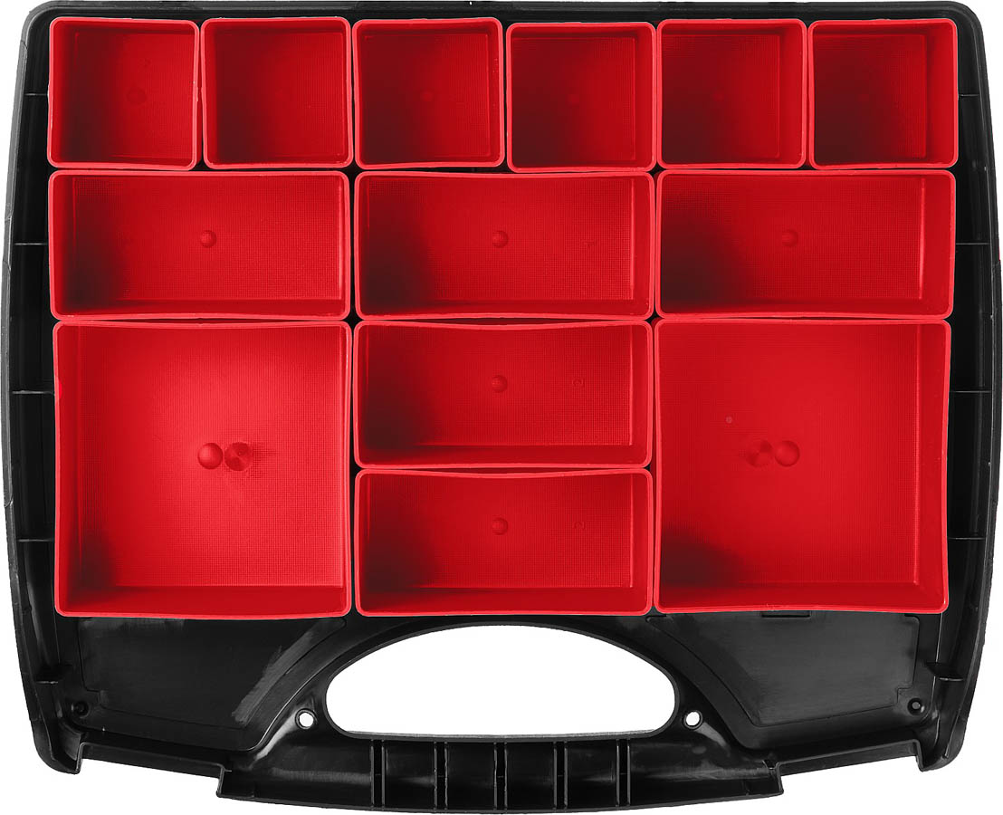 Органайзер ЗУБР 38034-13, применяется для хранения инструментов и принадлежностей. Съемные лотки органайзера позволяют организовать удобное хранение и переноску принадлежностей к инструментам.