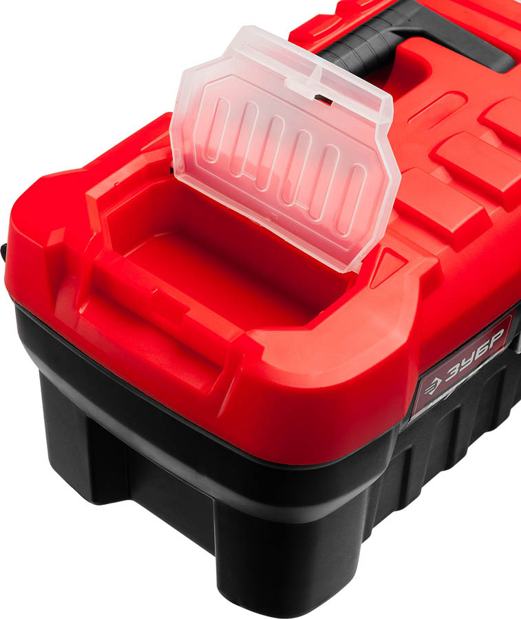 Ящик для инструмента ЗУБР 38180-16_z02, применяется для хранения инструментов и сопутствующих товаров. Ящик с встроенным органайзером позволяет организовать удобное хранение инструментов и принадлежностей и обеспечивает быстрый доступ даже к небольшому инструменту или крепежу. Съемная полка для размещения мелких предметов или самых востребованных инструментов. Прочная прозрачная крышка органайзера из поликарбоната.