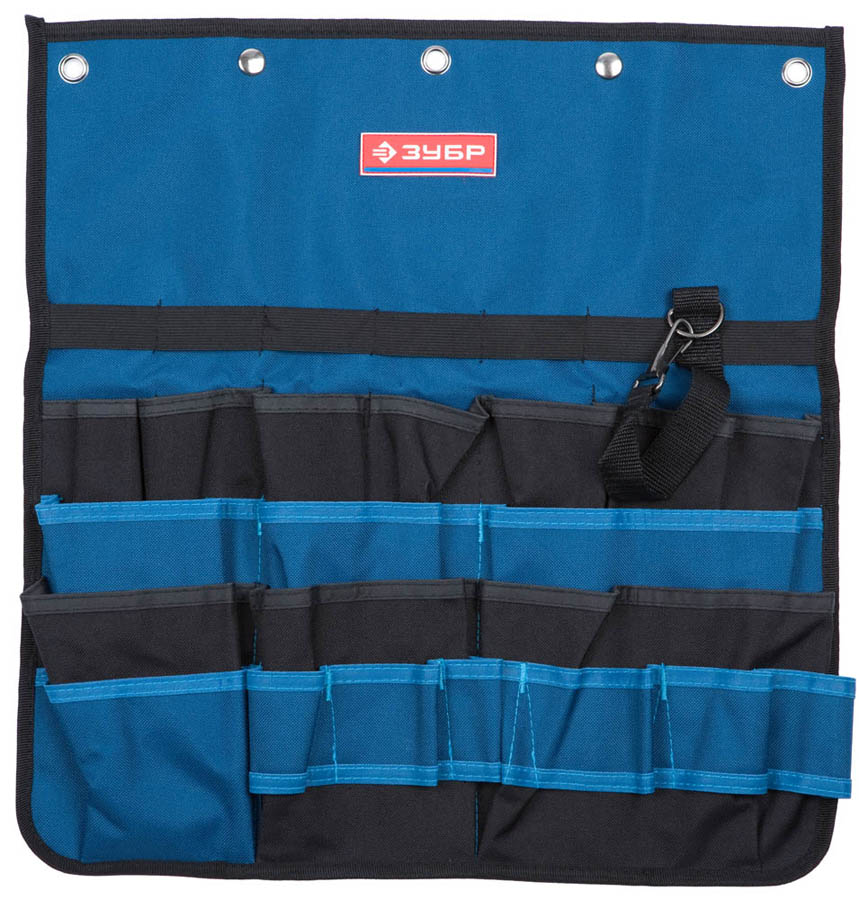 Органайзер ЗУБР 38636, предназначен для хранения и переноски инструмента. Это оптимальное решение для организации работы монтажника или электрика. Изготовлен из прочной ткани, имеет большое количество отделений и очень удобен в использовании. 21 карман позволяет разместить разнообразный инструмент и обеспечить удобный доступ к нему при работе. Для изготовления выбран высококачественный синтетический материал с отличными прочностными характеристиками. Петля для крепления изоленты и скотча. Специальная конструкция позволяет использовать органайзер как поясную сумку.