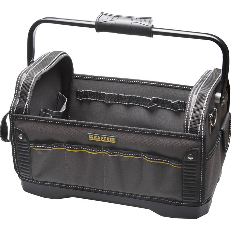 Сумка для инструмента KRAFTOOL 38741, предназначена для хранения и переноски разнообразного инструмента. Усиленное пластиковое дно сумки обеспечивает устойчивость на неровном основании и защищает от истирания, влаги и грязи. В качестве материала в сумке использован высококачественный полиэстер, обладающий высокой плотностью. Устойчив к воздействию влаги. Легко очищается от загрязнений. Обладает повышенной устойчивость к истиранию. Открытая конструкция сумки обеспечивает полный доступа к инструменту. Сумка оснащена. Специальным креплением для переноски уровня. Сумка снабжена регулируемым плечевым ремнем. Ручки для переноски и плечевой ремень оснащены резиновыми накладками для облегчения переноски.