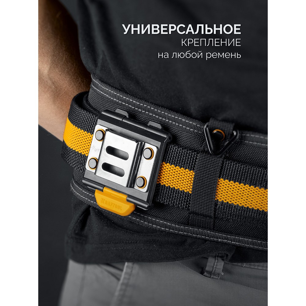 Применяется в качестве крепёжного элемента для строительных сумок и поясов KRAFTOOL