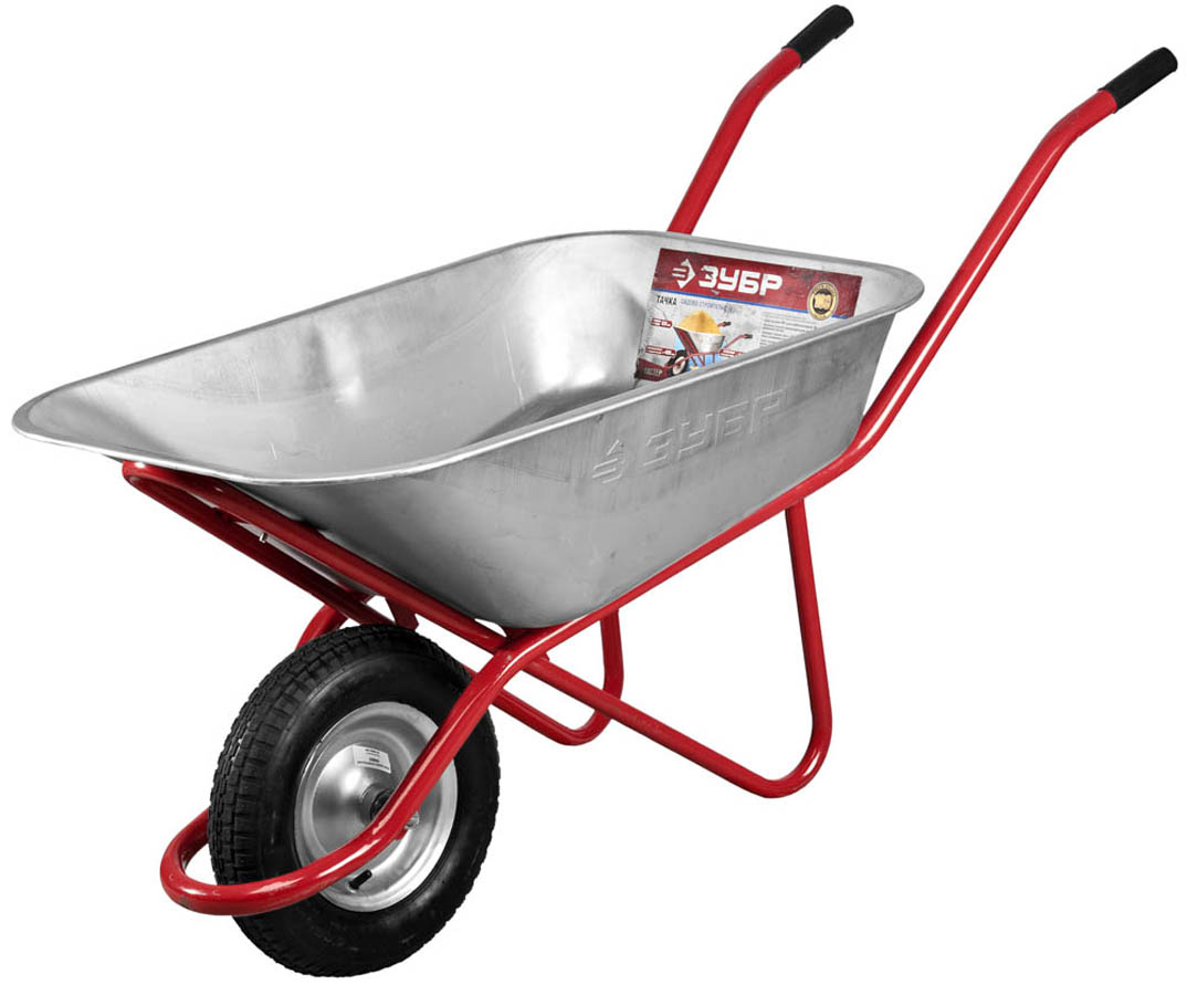 Тачка ЗУБР 39903, применяется для транспортировки грузов во время строительных, ремонтных или садовых работ. Изготовлена из высококачественных материалов, гарантирующих продолжительный срок эксплуатации. Усиленная стальная рама 32мм из цельногнутой трубы, а также опора специальной конструкции из стальной трубы 28мм выдерживают повышенные нагрузки. Вместительный кузов объемом 100 л для сыпучих материалов и 80 л для жидких материалов. Пневмоколесо 380мм имеет стальной обод и усиленные подшипники и обеспечивает лёгкое передвижение по неровной поверхности. Бутиловая камера обладает повышенной износостойкостью в широком диапазоне температур.