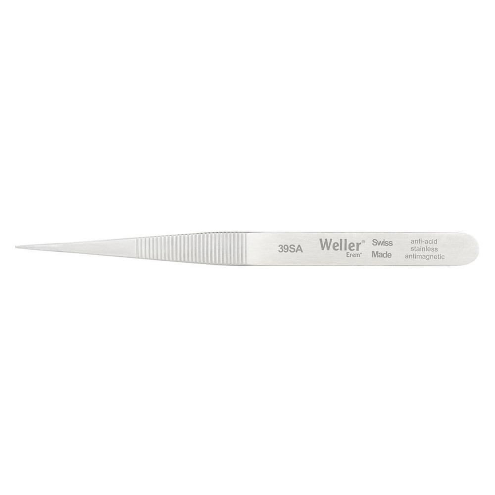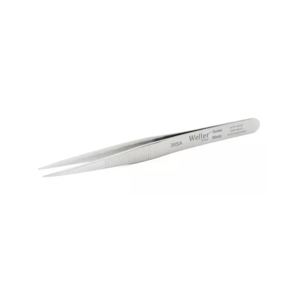 Пинцет 39SA для монтажа SMD-компонентов с круглыми концами диаметром 0,3 мм. Используется для захвата тонкой проволки и электронных компонентов цилиндрической формы.