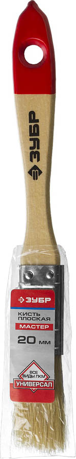 Кисть плоская ЗУБР "УНИВЕРСАЛ-МАСТЕР", натуральная щетина, деревянная ручка, 20мм