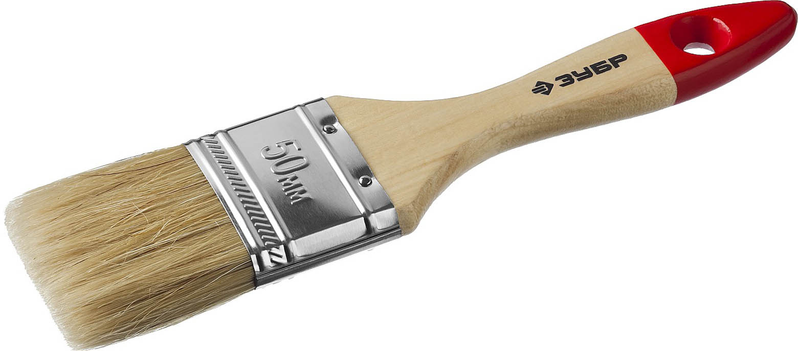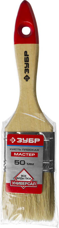 Кисть плоская ЗУБР "УНИВЕРСАЛ-МАСТЕР", натуральная щетина, деревянная ручка, 50мм