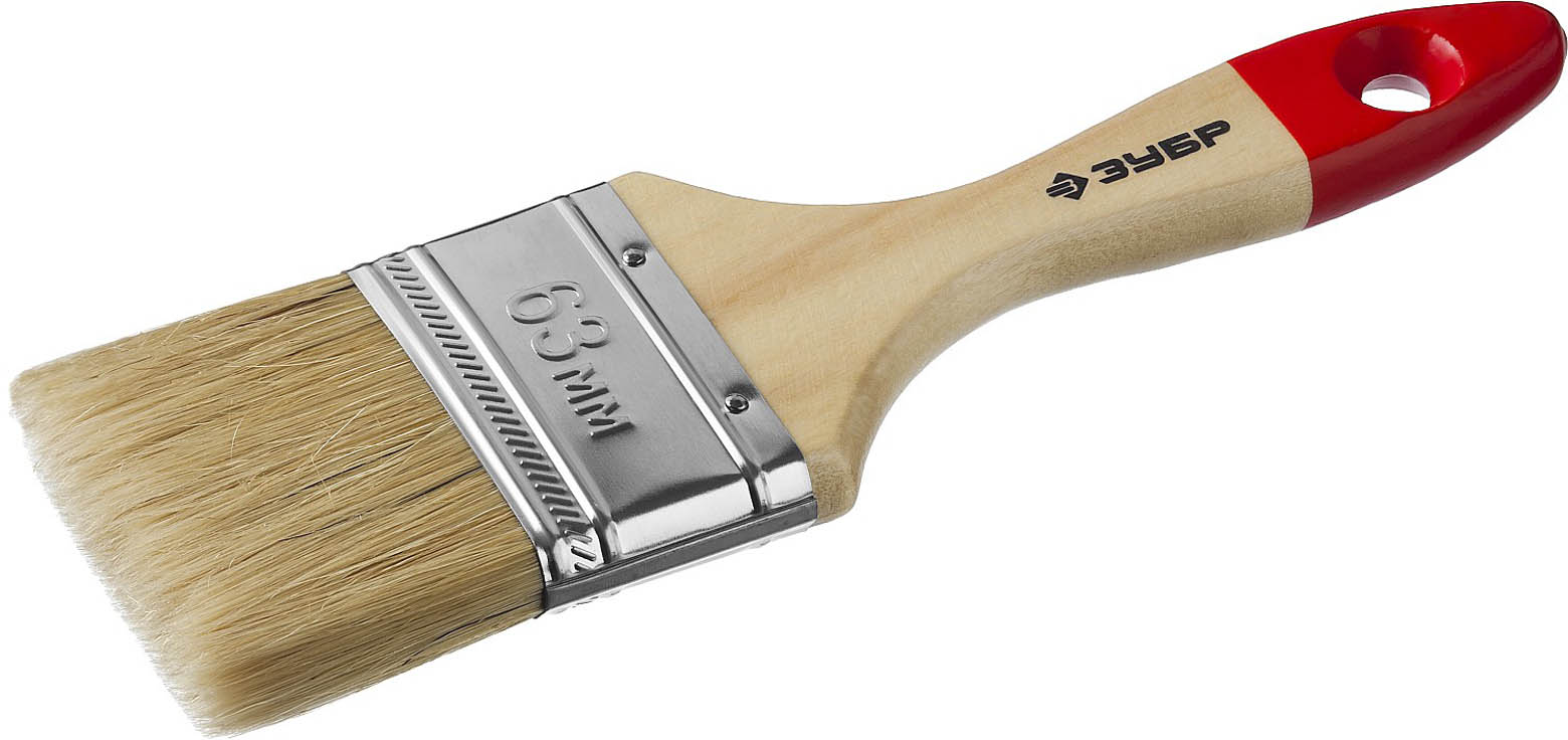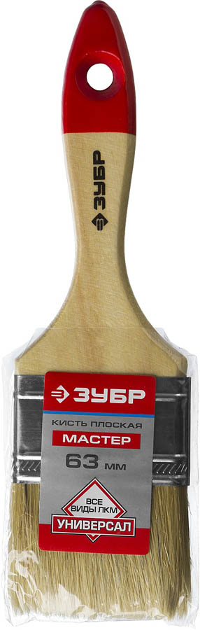 Кисть плоская ЗУБР "УНИВЕРСАЛ-МАСТЕР", натуральная щетина, деревянная ручка, 63мм