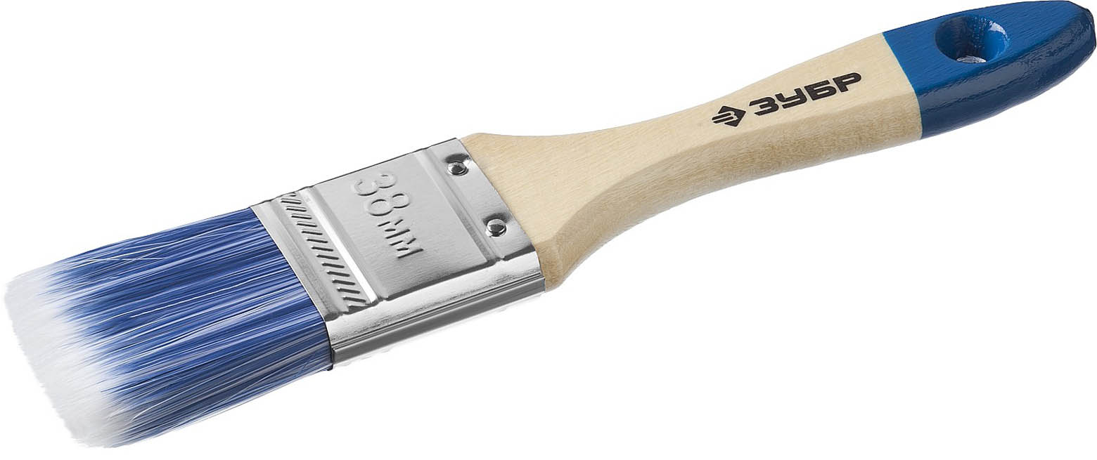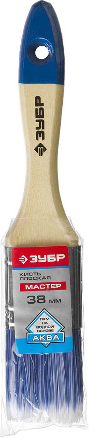 Кисть плоская ЗУБР "АКВА-МАСТЕР", искусственная щетина, деревянная ручка, 38мм