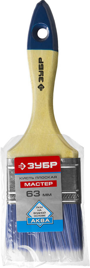 Кисть плоская ЗУБР "АКВА-МАСТЕР", искусственная щетина, деревянная ручка, 63мм