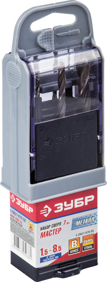 ЗУБР 7 шт. (Ø 2,5-10,2 мм), класс В, сталь Р6М5, набор сверл по металлу 4-29621-H7R-SB